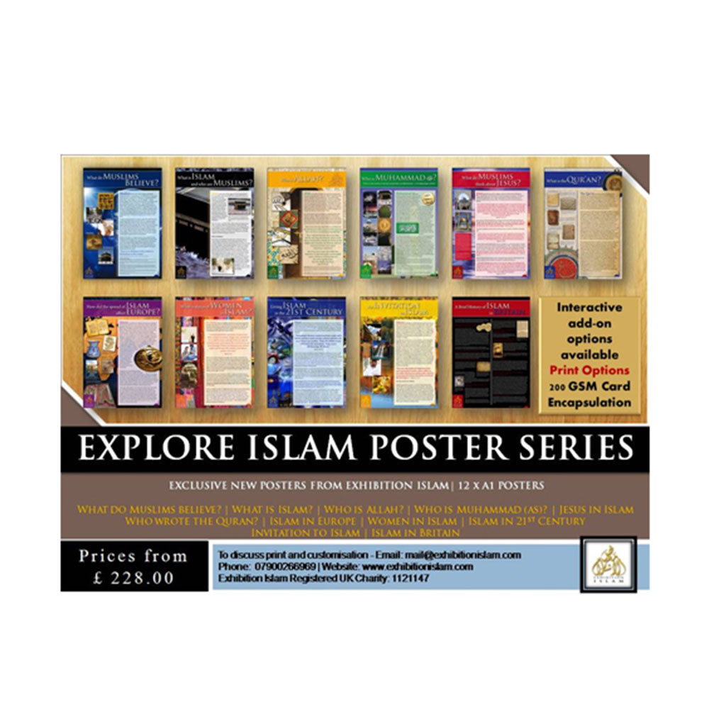 This series of 12 modern posters explores the fundamental beliefs and values of Islam, and traces the Muslim contribution to the modern world. Available in A1 encapsulation or Pull up banner format.